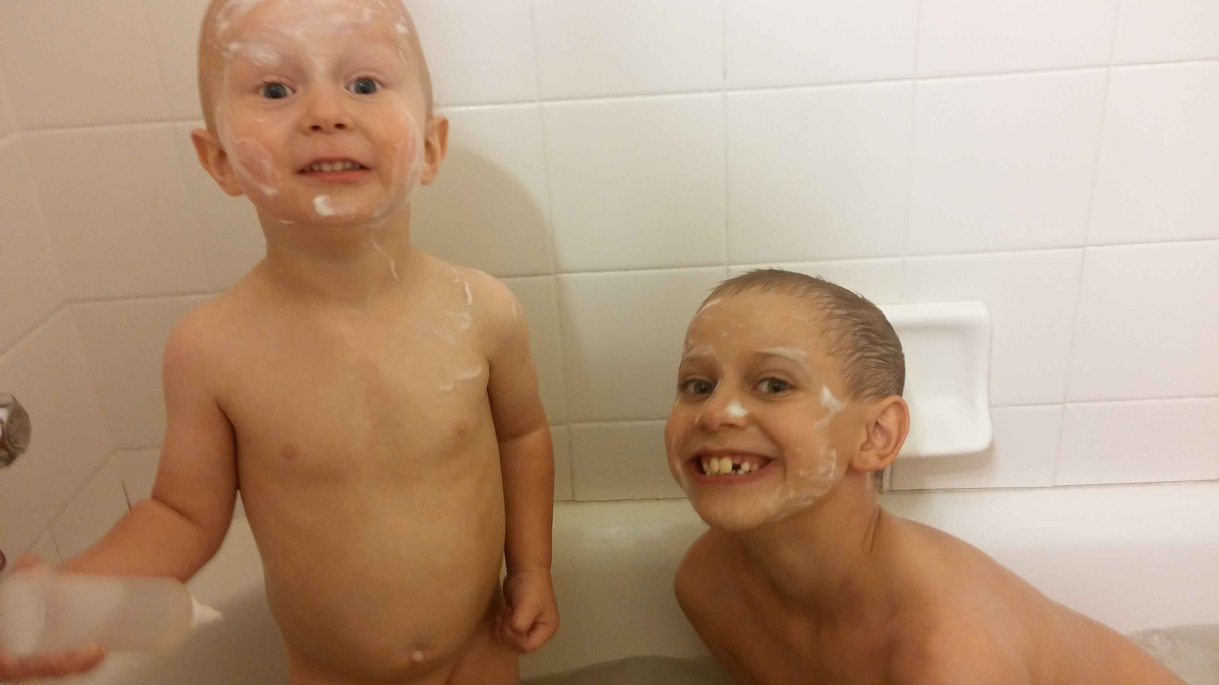 Cute brothers are taking a bath together